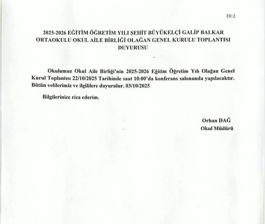 Okul Aile Birliği Toplantı Duyurusu
